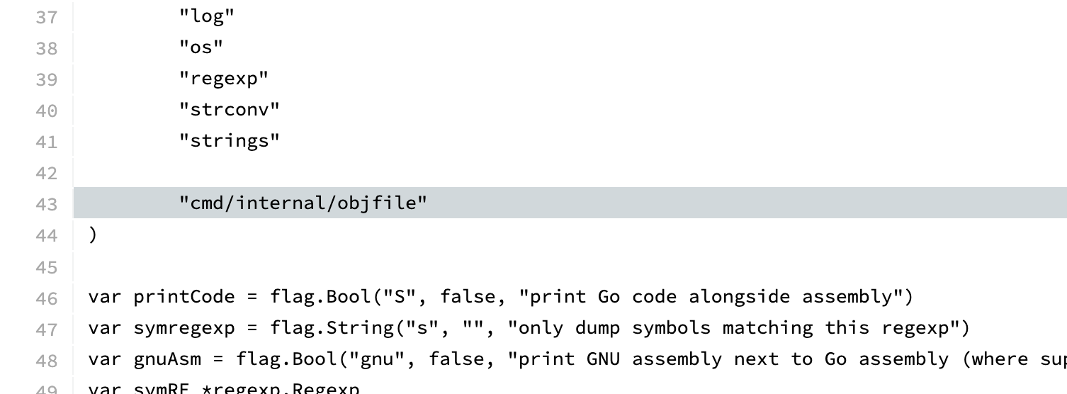 The first step in the project was to have access to the disassembly. It would be wasteful to start a disassembler from scratch. I knew that go tool objdump could already do it, so maybe they have some library they are using.